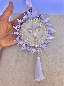 Peça em MDF, revestido com Piquet, pérolas e Gripuir, medindo 12x12cm Prazo de entrega 10 dias após confirmação de pagamento.